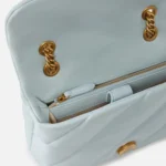 - Alça ajustável e removível em pele e corrente;