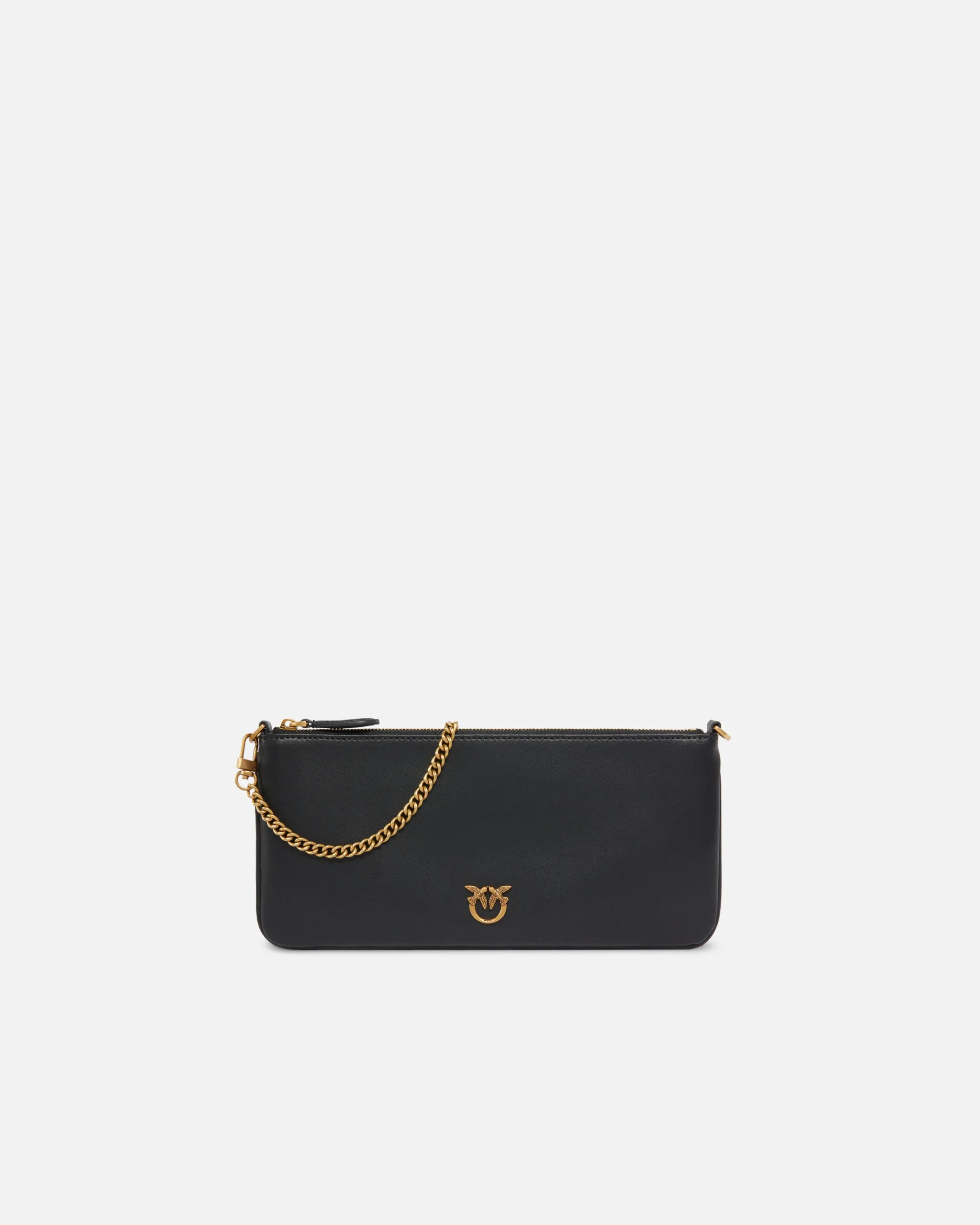 - Alça ajustável e removível em pele e corrente;